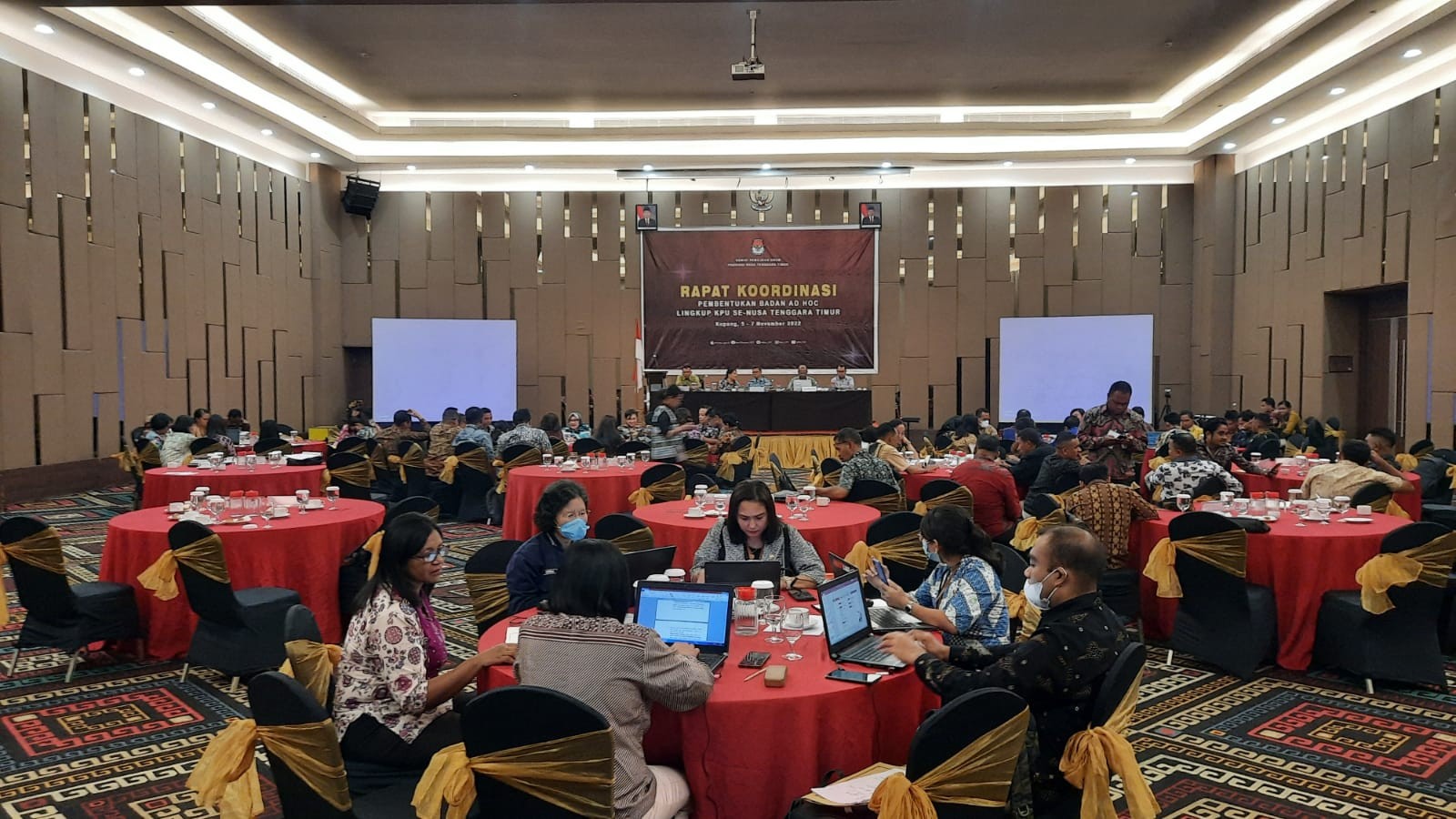 Borong. Ketua KPU Provinsi NTT Thomas Dohu membuka kegiatan Rapat Koordinasi Pembentukan Badan Ad Hoc Lingkup KPU Se NTT yang dilaksanakan di hotel Aston Kupang, dimulai dari tanggal 5 sampai 7 November Tahun 2022.