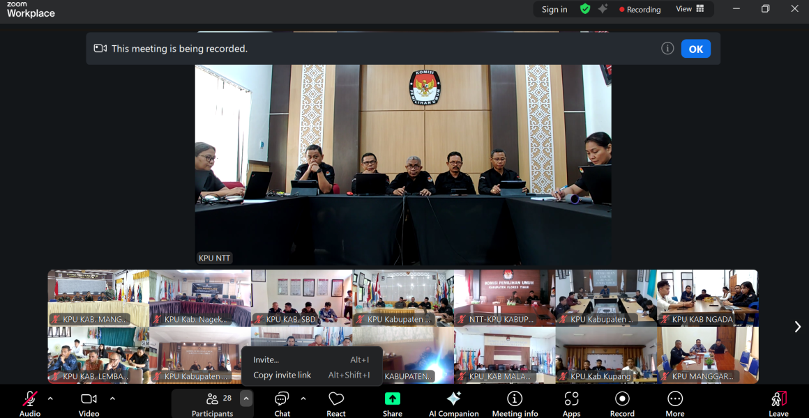 Borong, kab-manggaraitimur.kpu.go.id – Komisi Pemilihan Umum (KPU) Kabupaten Manggarai Timur yang diwakili oleh Anggota Divisi Teknis Pennyelenggaraan, Konradus Anselmus Sandur; Anggota Divisi Perencanaan, Data, dan Informasi, Muhamad Ardian; Anggota Divisi Hukum dan Pengawasan, Syamsul A. Rahman; serta Plt. Sekretaris, Yosef Hardi Himan, mengikuti kegiatan Kopi Parmas (Kitong Omong Pemilu, Demokrasi, dan Partisipasi Masyarakat) Seri ke-4 yang diselenggarakan oleh KPU Provinsi Nusa Tenggara Timur secara daring melalui aplikasi Zoom Meeting, Rabu, (10/12/2025). Kegiatan ini diikuti oleh seluruh jajaran KPU Kabupaten/Kota se-NTT. Pada pelaksanaan seri ke-4 ini, KPU Provinsi NTT mengusung tema “Dinamika Opini Publik dan Pembentukan Preferensi Pemilih”, sebuah topik strategis mengingat pentingnya pemahaman mengenai perilaku pemilih, pola pembentukan persepsi masyarakat, serta berbagai variabel yang memengaruhi pilihan politik dalam proses demokrasi. Narasumber pada seri kali ini, yakni : Kornelius Sumbi, anggota KPU Kabupaten Ende Divisi Sosialisasi, Pendidikan Pemilih, Partisipasi Masyarakat, dan Sumber Daya Manusia, serta Herybertus Harun, Anggota KPU Kabupaten Manggarai Divisi Teknis Penyelenggaraan. Kegiatan dibuka oleh Ketua KPU Provinsi NTT, Jemris Fointuna, yang menekankan kegiatan Kopi Parmas merupakan ruang dialog dan pembelajaran bagi seluruh jajaran penyelenggara. Pada sesi pemaparan materi, seluruh peserta diajak memahami bagaimana opini publik terbentuk serta bagaimana preferensi pemilih dipengaruhi oleh isu-isu sosial, budaya, ekonomi, dan politik yang berkembang. Dalam konteks kepemiluan, Kornelius Sumbi dalam pemaparannya secara kompleks menggambarkan opini publik mulai dari sumber dan faktor yang mempengaruhi, tujuan, dampak/risiko, tantangan, sampai kepada strategi mengelola opini publik. Senada dengan apa yang dipaparkan oleh Kornelius, materi yang disampaikan Herybertus Harun merefleksikan pengalaman penyelenggaraan pemilu dan pemilihan kepala daerah di Kabupaten Manggarai. Harun menyampaikan bahwa banyak opini yang muncul dalam pelaksanaan pemilu dan pilkada yang mempengaruhi preferensi pemillih di Kabupaten Manggarai. Para narasumber juga menjelaskan bahwa strategi komunikasi yang efektif, penyebaran informasi yang akurat, serta edukasi politik yang berkelanjutan menjadi elemen penting dalam mendorong terciptanya pemilih yang cerdas dan rasional. Selain itu, literasi digital turut menjadi sorotan penting untuk mengantisipasi potensi disinformasi, misinformasi, dan polarisasi di ruang publik. KPU Kabupaten Manggarai Timur dalam kegiatan ini turut berpartisipasi aktif dalam menanggapi materi yang disampaikan oleh para narasumber. Konradus Anselmus Sandur, anggota divisi teknis penyelenggaraan dalam sesi diskusi menyoroti KPU sebagai penyelenggara pemilu yang sering menjadi objek dari opini publik itu sendiri. Jajaran KPU Kabupaten/Kota yang lain juga aktif menyampaikan tanggapan dan pertanyaan, dan direspon dengan baik oleh para narasumber. Melalui partisipasi aktif dalam kegiatan ini, KPU Kabupaten Manggarai Timur menegaskan komitmennya untuk terus meningkatkan kapasitas internal serta memperkuat kualitas pelayanan kepemiluan. Kegiatan Kopi Parmas menjadi ruang strategis untuk saling belajar, memperkaya perspektif, dan menguatkan kolaborasi antarpenyelenggara pemilu se-NTT dalam mewujudkan pemilu yang berintegritas, profesional, dan inklusif. (Humas KPU Matim)